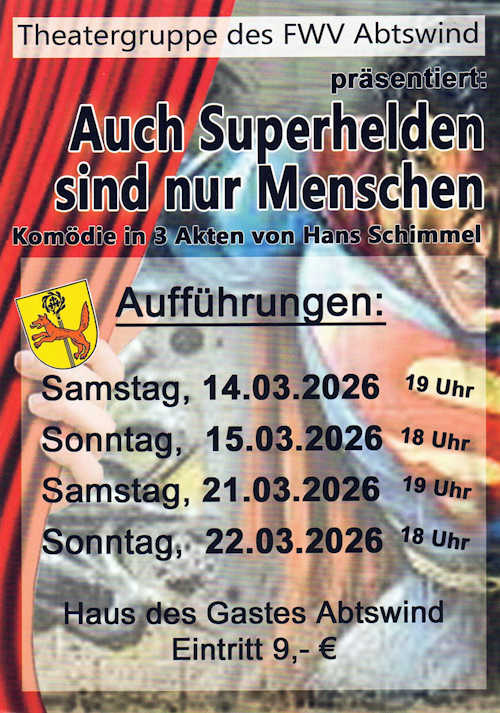 Auch in diesem Jahr wird uns die Theatergruppe wieder mit einer Komödie in 3 Akten erfreuen. Die Termine sind: